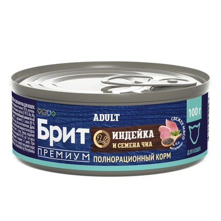 Брит Премиум Консервы для кошек с мясом индейки и семенами чиа Cat Adult, 100 г