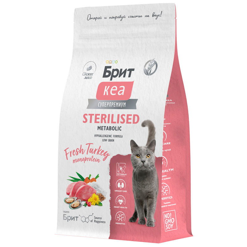 Брит Кеа Сухой корм для стерилизованных кошек с индейкой Sterilised Metabolic Monoprotein, 1,5 кг
