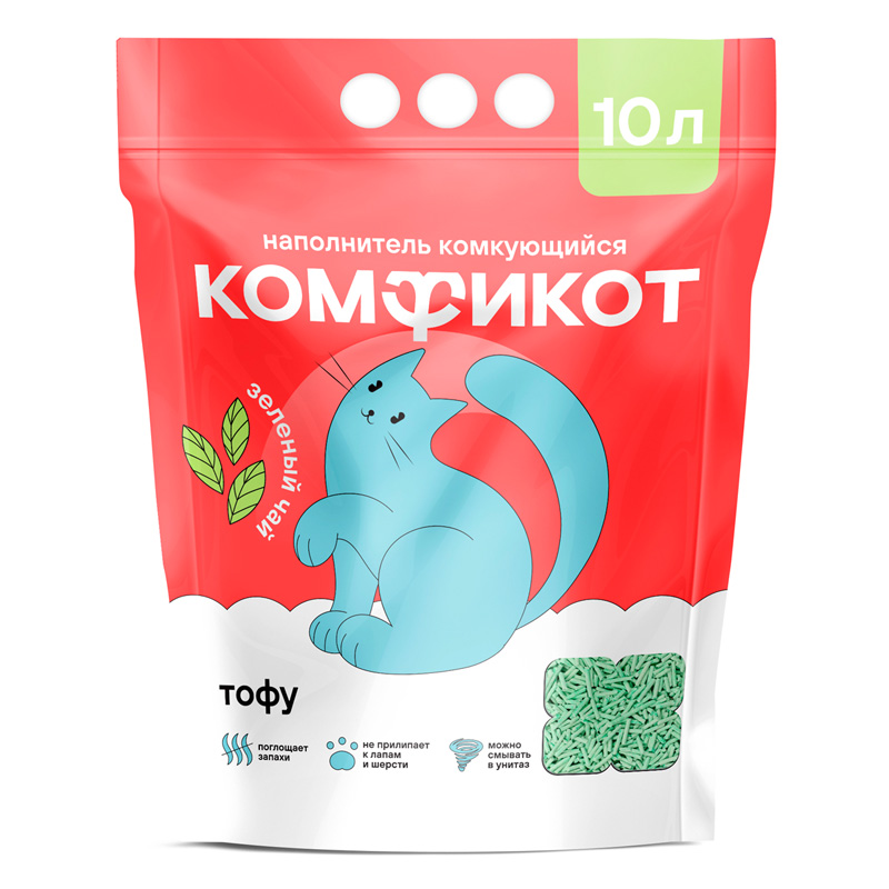 Комфикот Наполнитель комкующийся тофу, зеленый чай, 10л