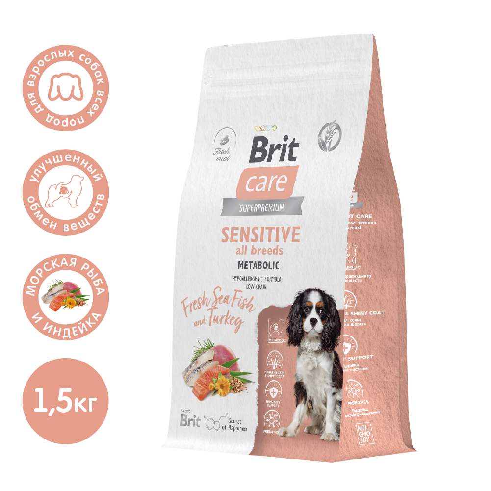 Брит Кеа Сухой корм для собак для улучшения метаболизма с морской рыбой и индейкой Dog Adult Sensitive Metabolic, 1,5 кг